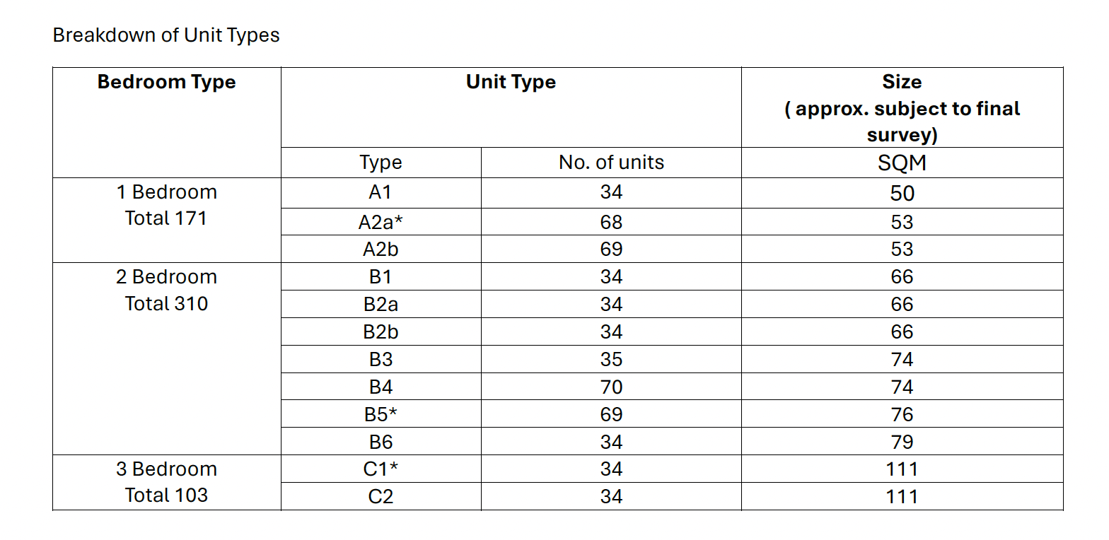 | Unit Type | No. of Units | Floor Price | Floor Area (sqft) |