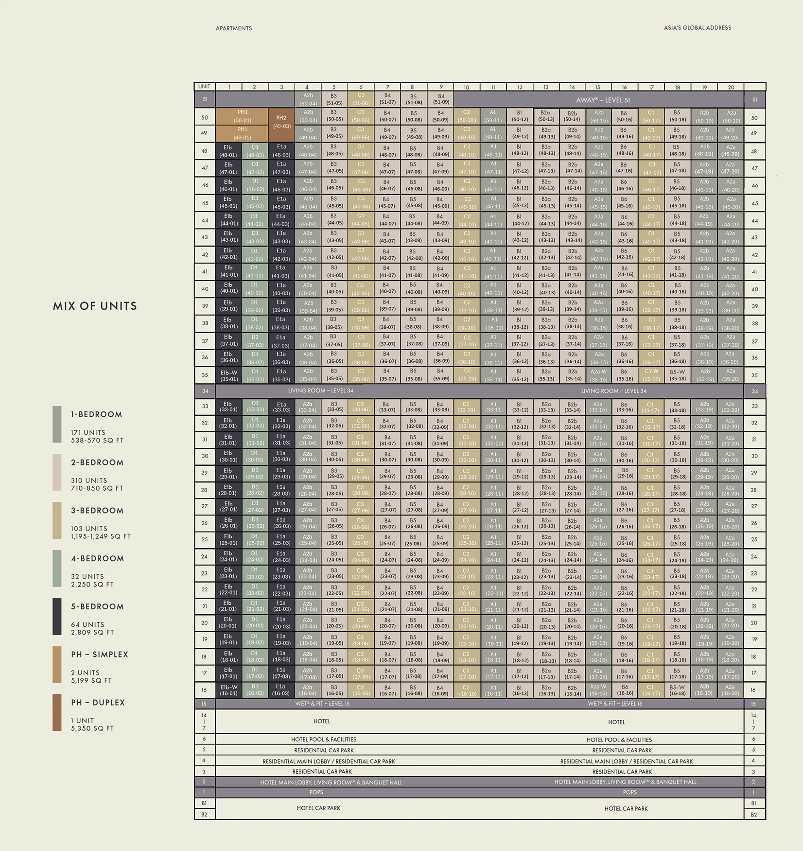 | 1 Bedroom | 171 | TBA | 538-570 |